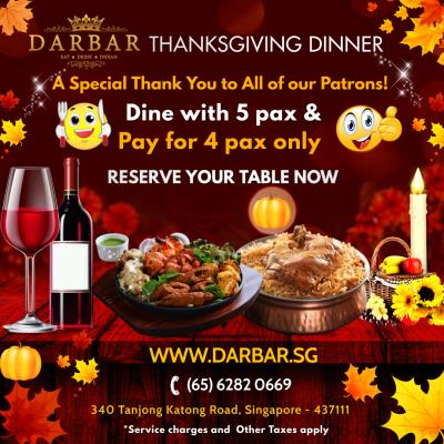 Celebrate Thanksgiving at #Darbar. Dine with 5 pax and pay for 4 pax only, it's ...