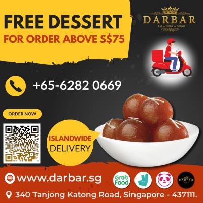 Enjoy #Darbar's free desserts on Orders above $75