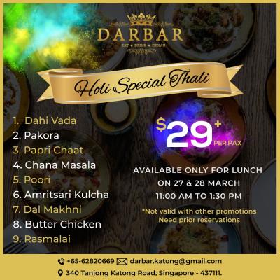 Darbar Special Holi Thali - Delish! Grab the delicious lunch on Sunday 28th, 11a...