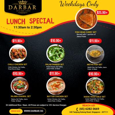 Darbar's Delicious & Tasty set lunch at affordable price. Available for Dine-In ...
