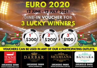 DINE & WIN! Stay Home and Enjoy the Euro 2021. We deliver Happiness to your door...